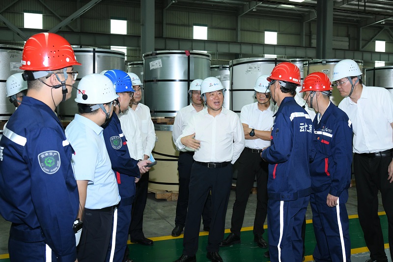 翁祖亮調(diào)研企業(yè)園區(qū)冷軋加工區(qū)并與一線干部職工交流